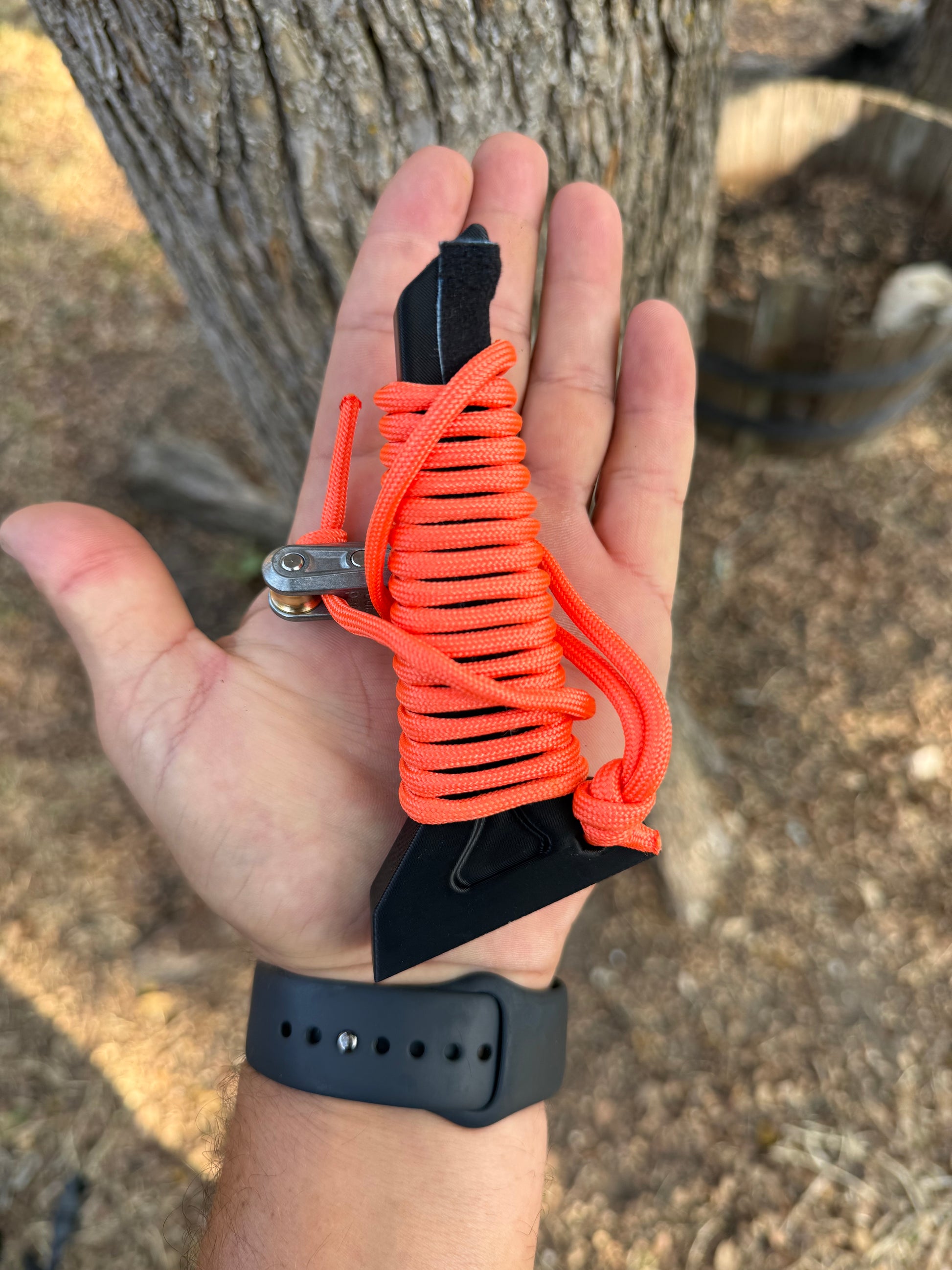 We are excited to partner with RollerCam and Stealth Outdoors on our latest bow hanger the Trunk Line! This hanger is designed with the saddle and tree stand hunter in mind! Minimalist design keeps this hanger light weight and easy to pack in! Simply run the paracord around the trunk of the tree and connect the RopeRoller to the paracord loop and cinch it down! The paracord design allows you to tie loops for hanging packs, calls or gear anywhere around the tree!